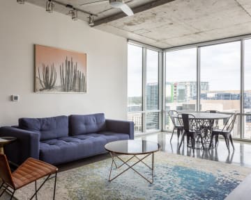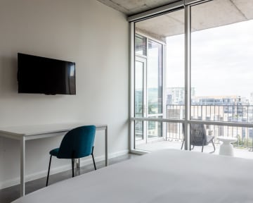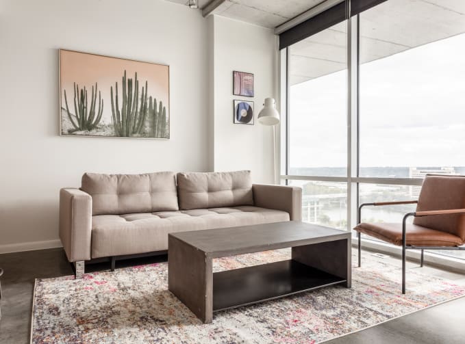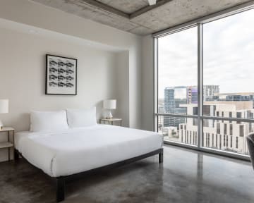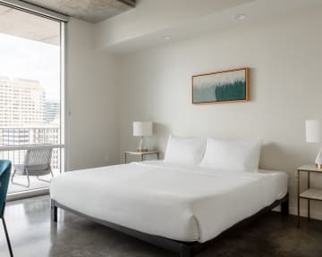 Hear the sweet sounds of Austin's live music performances and lively streets from your very own contemporary apartment. Featuring high-rise views of the river and downtown, your Kasa is within walking distance of local restaurants, nightlife, and most importantly; South Congress Bridge. Our tech-enabled apartments offer self check-in at 4pm, 24/7 guest support by text, phone, or chat, and a Virtual Front Desk accessed via mobile device.