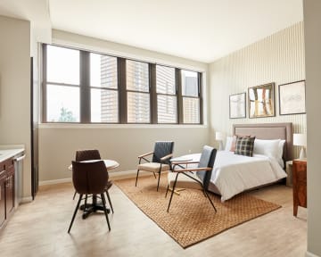 Enjoy the best of Detroit right outside your door at Kasa Cadillac Square, where elements of the past blend with modern touches. Our spacious rooms offer stunning city views, fully equipped kitchens, and in-unit laundry. You'll have easy access to the 7-11 on our ground floor, as well as nearby restaurants, parks, and entertainment venues. Our tech-enabled rooms and apartments offer self check-in at 4pm with an on-site Front Desk available. Additionally, 24/7 Virtual Front Desk services are accessible via mobile, including guest support by text.